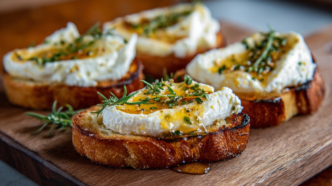 Creamy whipped feta spread over toasted baguette slices creates an instant upscale look without effort, making it ideal for spontaneous hosting.